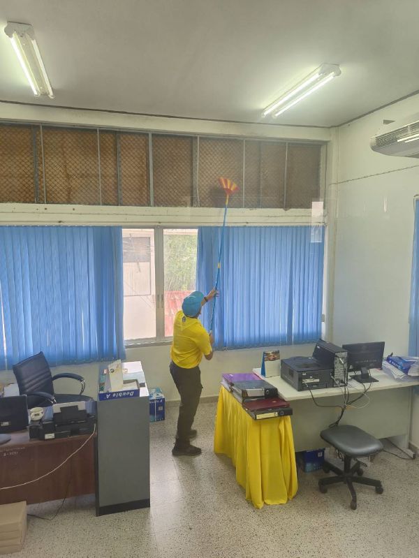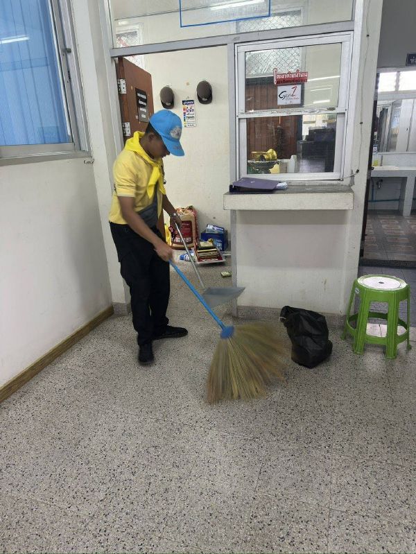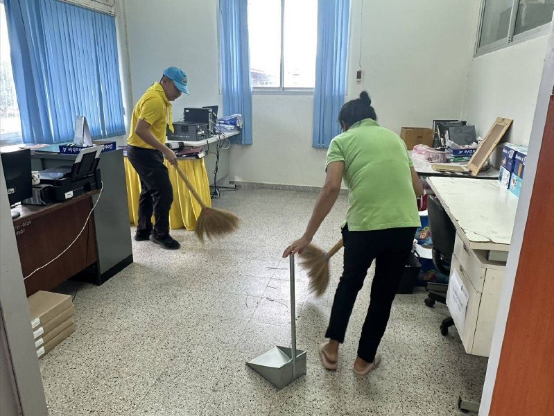 8. รายระเอียดกิจกรรม : ร่วมลงแถวพัฒนาทำความสะอาดบริเวณภายในอาคารที่ทำการ สภ.ละแม