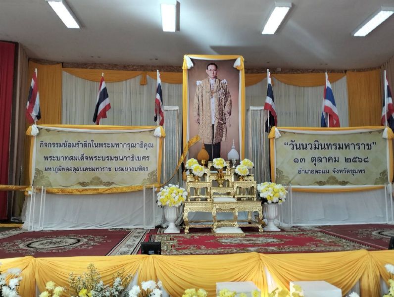 เรียน ผู้บังคับบัญชา ภ.จว.ชุมพรสภ.ละแม วันนี้ 13 ต.ค.2568 เวลา 07.00 - 09.50 น. พ.ต.อ.วิทย์ทวี ภริตานนท์ รอง ผบก.ภ.จว.ชุมพร รรท.ผกก.สภ.ละแม พ.ต.ท.พชร อ่วมทองดี รอง ผกก.ป.สภ.ละแม พร้อมด้วย ข้าราชการตำรวจ สภ.ละแม ร่วมกิจกรรม ณ ศาลาประชาคม อ.ละแม เนื่องในวันนวมินทรมหาราช เพื่อเป็นการน้อมรำลึกใน พระมหากรุณาธิคุณในพระบาทสมเด็จพระบรม ชนกาธิเบศร มหาภูมิพลอดุลยเดชมหาราชบรมนาถบพิตร