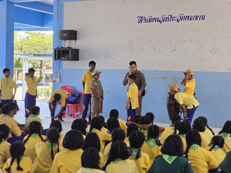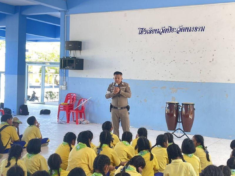 บรรยายให้ความรู้เกี่ยวกับการเฝ้าระวังปัญหายาเสพติดและการขับที่ ปลอดภัย สวมหมวกนิรภัย 100%